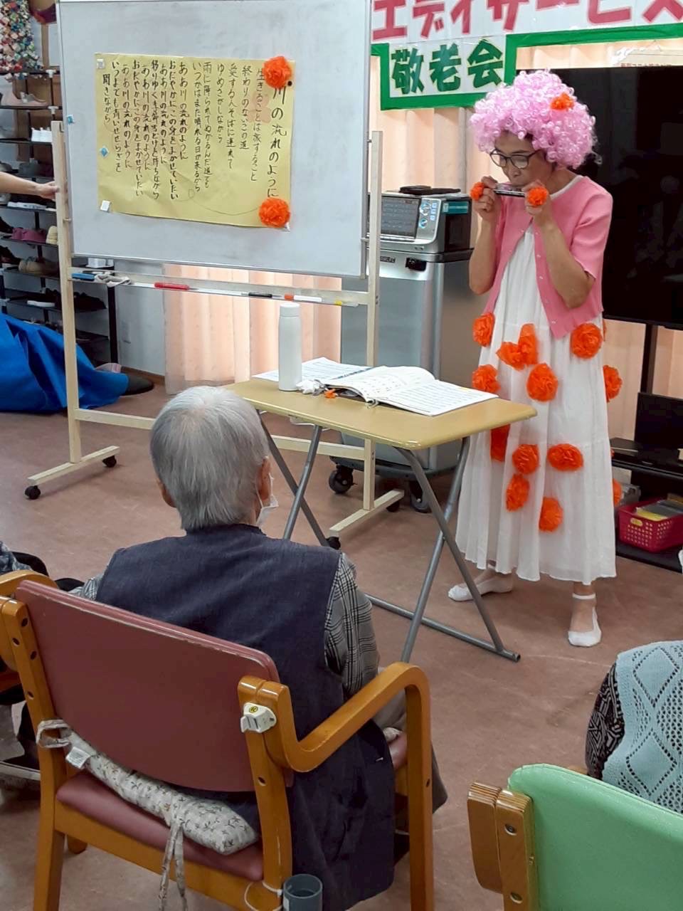 9月15日、16日に、ナナエデイサービスでは、敬老の日の行事を行いました。15日は、デイサービス職員による余興がありました。