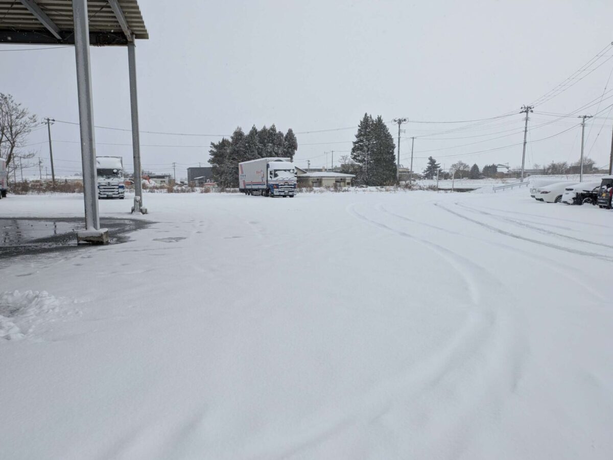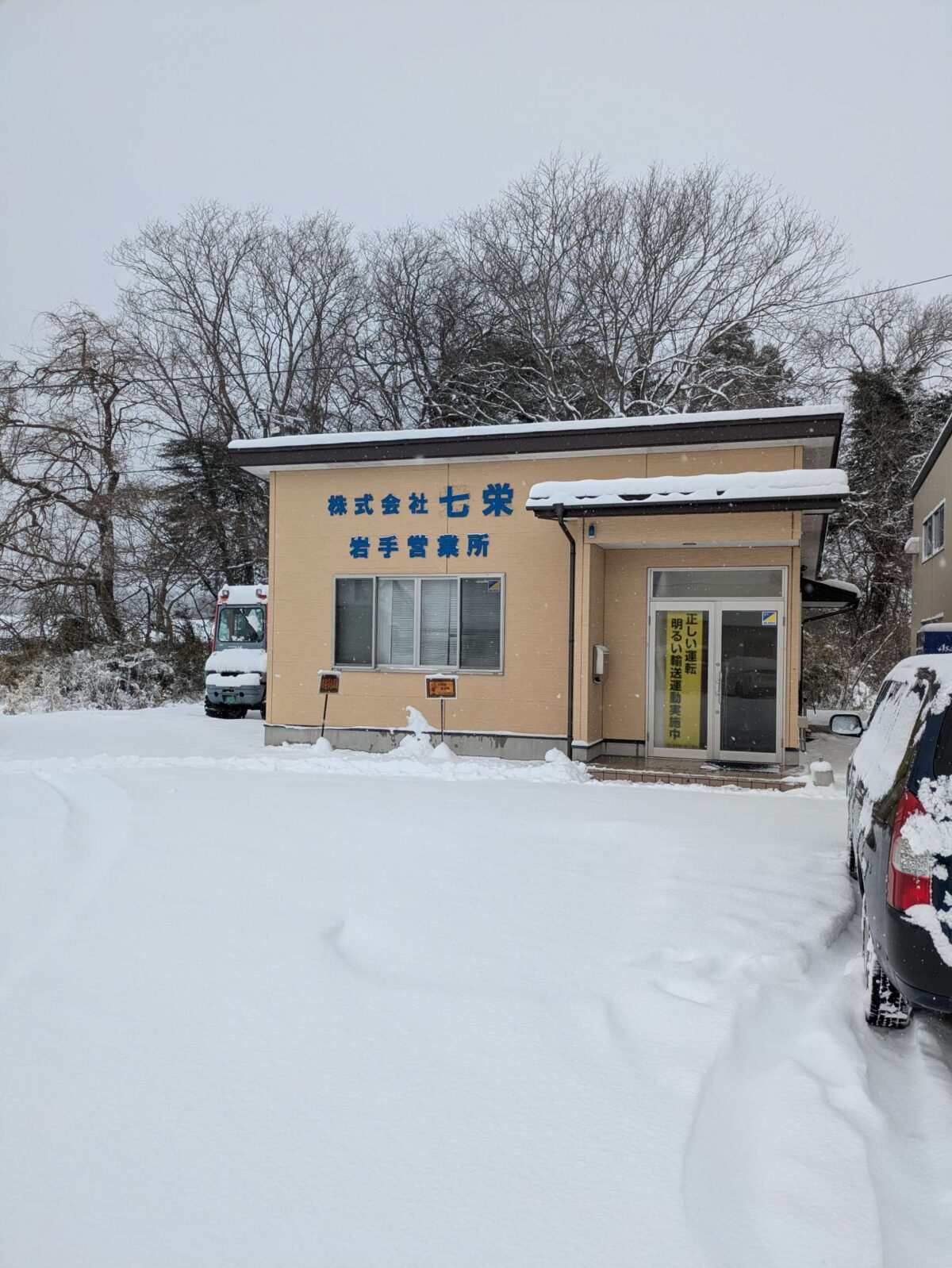 静岡でも初雪が降ったニュースが流れましたが、七栄 岩手営業所では昨晩からの雪で、一面真っ白となりました。朝方から降り始めた雪は、あっという間に10㎝くらい積もり、降ったり、やんだりと、とても冷え込みの強い1日の始まりだったそうです。
